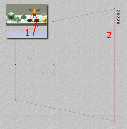 Now chose the primitive "2d Face vertical" just right below the "Leonardo Man" in the tools bar on top of the working space. ( Picture 1 - 1 ) Scale it according loose to the proportion of your downloaded sample picture ( We assume it to be more a rectangle than a square) to avoid distortion. (Picture 1 - 2 )