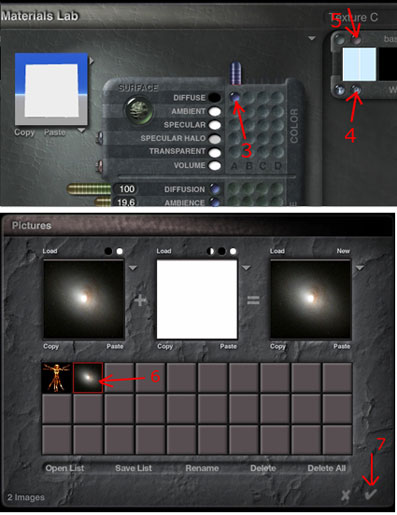 Next click on the "Leonardo Man" in the top toolbar and the pictures editor will pop up ( Picture 2 - you can ignore steps 3-5 in material lab like shown there on top, as this is just a second way to enter the pictures editor...)
