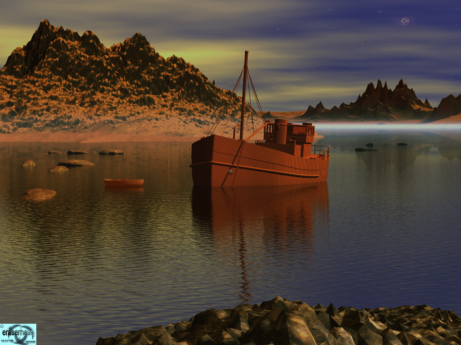 Das zweite, mit den Boot ist von der Bildaufteilung her schon mal auch sehr gut. Nur die Textur vom Boot finde ich nicht so schön! So gleichmäßig und auf dem ganzen Boot einheitlich.