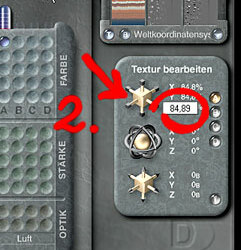 Mit dem oberen (wo im Bild das Eingabefeld mit dem Prozentwert eingeblendet ist) änderst Du die Größe der Textur jeweils für x,y und z.