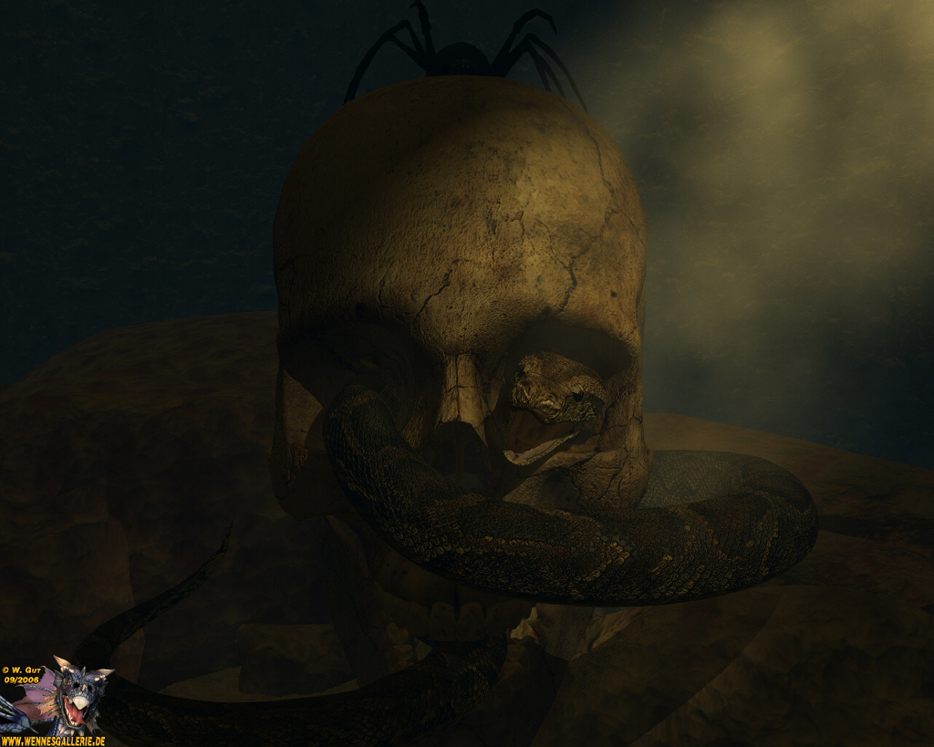 PS: Eigentlich war ja die Schlange in Poser die größere Spielerei. Bis ich die da durch den Schädel geflochten habe... :P