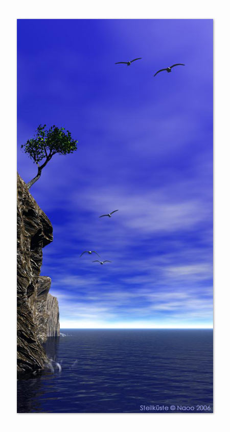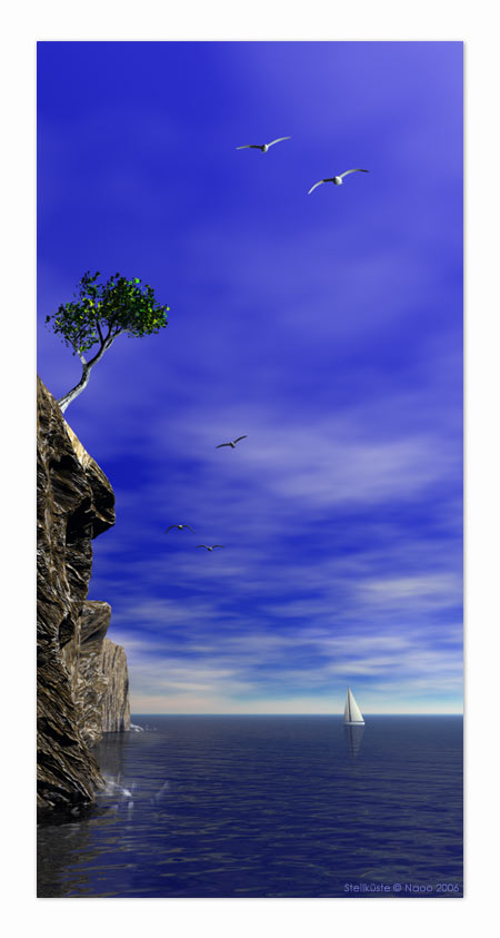 @ MoNrAiL: Aber das "Spielen mit Licht", daaaaauuuuuuert auf meinem betagten Rechner. Zwei Lichter habe ich hinzugefügt: 1. Licht unter die beiden vorderen Möven, dabei fällt auch noch ein wenig gegen den Baum und 2. Licht auf die Segel des kleinen Bootes (selbst gebowlt (schreibt man das so ;-)).
