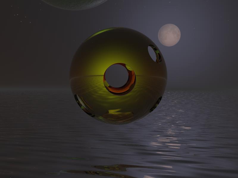 Das ergebnis soll eine kugel sein, in der man durch die zylinder-löcher in den hohlen raum schauen kann.