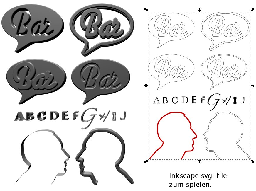In Inkscape lassen sich sehr komplexe Zeichnungen erstellen, die mit Hilfe eines SplineTools die reinste Qual darstellen würden. Wer also selbstentworfene Logos etc. rendern möchte, kann die Zeichnung hierfür prima in Inkscape realisieren. Ein paar Dinge muss man schon wissen: zB. sollten Schriften in Pfade umgewandelt werden und Zeichnungen die "Löcher" enthalten, wie die Buchstaben "A, B, D etc") müssen vor dem speichern in "Combined Paths" umgewandelt werden. Wer noch Fragen hat, bitte gerne.