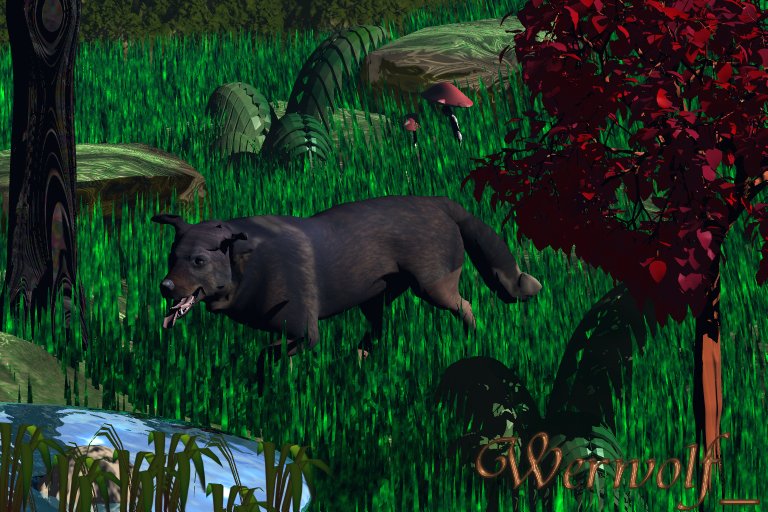 Nu denn, ist mein erster Poser/Bryce Kombi. Habe dazu im Poser meinen Wuff nachgebaut in dem ich an einem anderen Hund, bei diverse Einstellungen, Veränderungen vorgenommen habe und habe ihn zum Schluss in Bryce in eine nette Umgebung gesetzt. Für die Textur musste mein Wuff natürlich herhalten *gg*. Orig. Bild meines Wuff's habe ich mal mit angehangen damit man einen kleinen Vergleich hat.