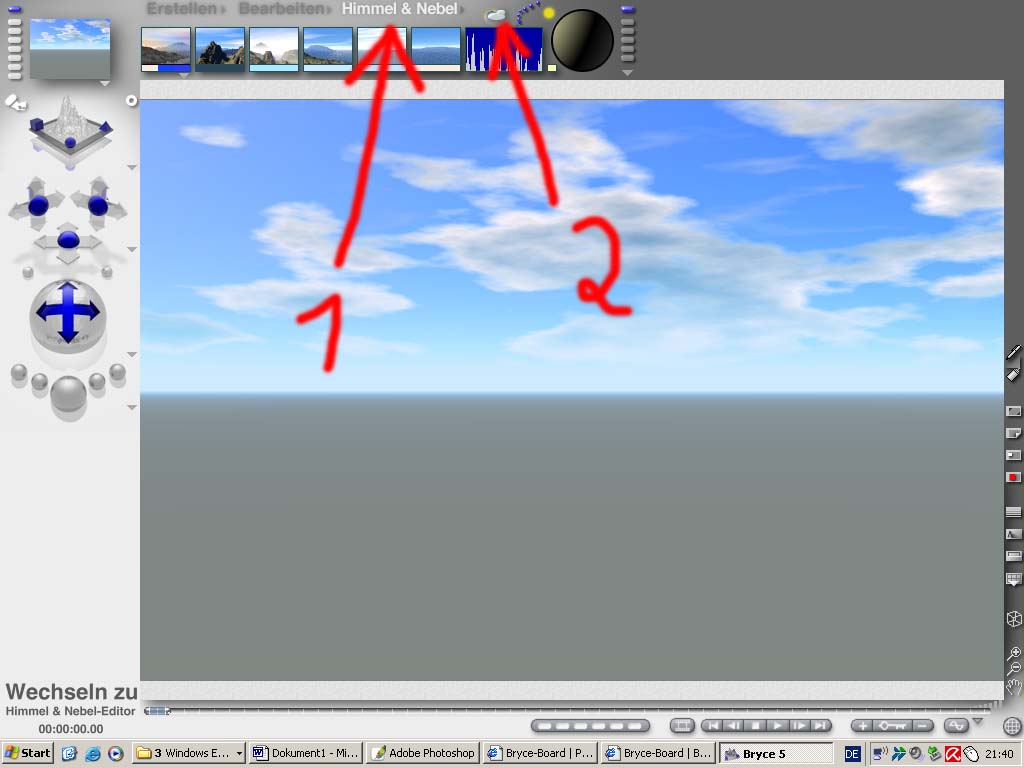 Ein anderer Punkt ist die große Leere im Hintergrund. Könnte durch einen Hügel der die Verbindung zwischen Ebene und Berg herstellt etwas abgemildert werden. Die Textur müsste dann von der Textur der Ebene in die Textur des Berges übergehen – und schon ist die Pause vom DTE-Tut beendet. ![]()