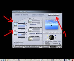 Die engl. Begriffe der Einstellungs-Icons (Kopfzeile im "Sky&Fog" Menü, innerhalb der Bildchen ändert sich der Cursor zu nem Pfeil und zeigt Dir somit dass Du Einstellungen vornehmen kannst) sind von links n. rechts: