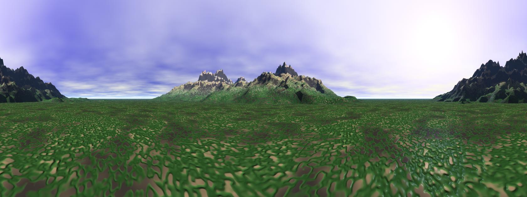 danke für die schnelle Reaktion und die Antwort, Grund der Anfrage ist die, da ich mit terragen sonst meine Hintergründe für meine Bilder erstellt habe, ich jedoch nur die freie Version benutzte, dachte ich mir wechsle mal zu Bryce. Das eine Programmumstellung nicht einfach ist, eh klar. Wenn ich zum Beispiel Höhenzüge eingefügt habe muss ich die so hoch scalieren das ich sie überhaupt noch sehe. oder gehe ich falsch an die sache heran und ich muss meine Szene erst einmal normal erstellen, und dann erst wenn es ans rendern geht auf Panorama umstellen. Ich hab jetzt mein dokument ( sinnige Bezeichnung) schon auf Panorma eingestellt. hier ein erstes Ergebnis