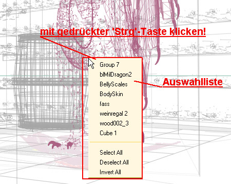 verdeckt: 'Select Meshes' -> Einzelteile auswählen und 'Select Groups' -> Objektgruppen auswählen -