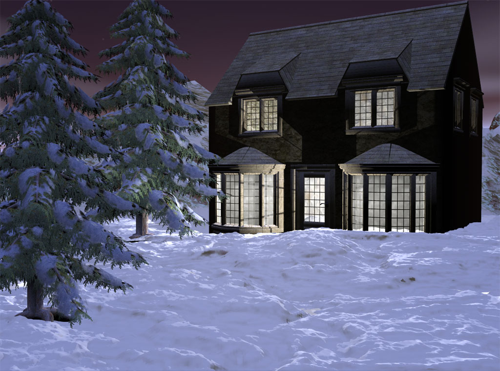 Sooo, mal mein erstes Brycebild zeige*mutigbin* Aber irgend etwas muss ich bei den Rendereinstellungen falsch gemacht haben. Geht doch nicht an, das ein Haus mit zwei Bäumen 5 Stunden rendert?? Solche Renderzeiten kenn ich nur von Terragen! Mit den Schatten bin ich auch nicht zufrieden, denn die sind fast gar nicht da*grummel* Normalerweise müssten die Fenster schatten auf dem Schnee werfen, genauso wie die Bäume. Also wer verrät mir jetzt was ich bei den Schatten falsch gemacht habe und wie die Rendereinstellungen ein gutes Ergebnis geben und noch im Erträglichen Rahmen bleiben?*bettel*