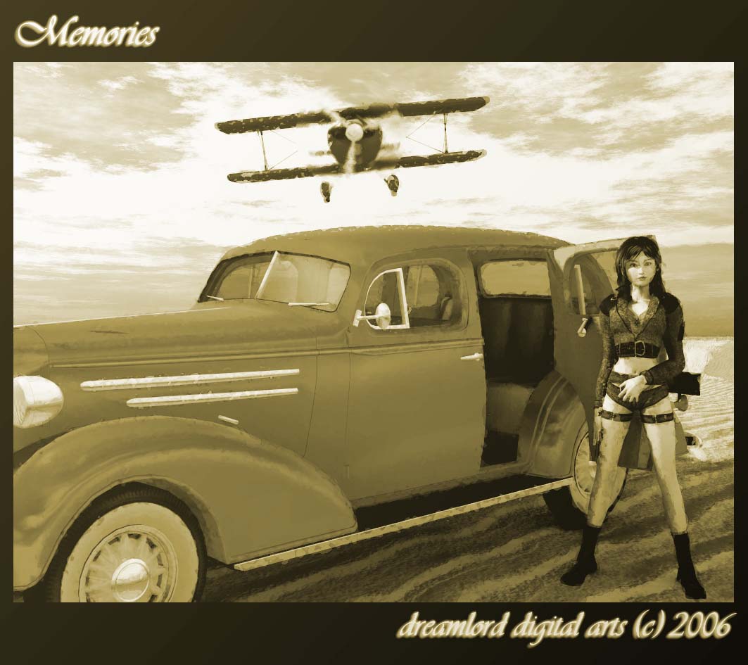 Habe heute mal wieder in Vue und Photoshop geschraubt. Rausgekommen ist dieses alte Photo von meiner Freundin ;-), der mitten in der Wüste der Sprit ausgegangen war. Musste sie dann mit dem Flugzeug abholen. Oh ja, da waren wir noch jung und frisch .....