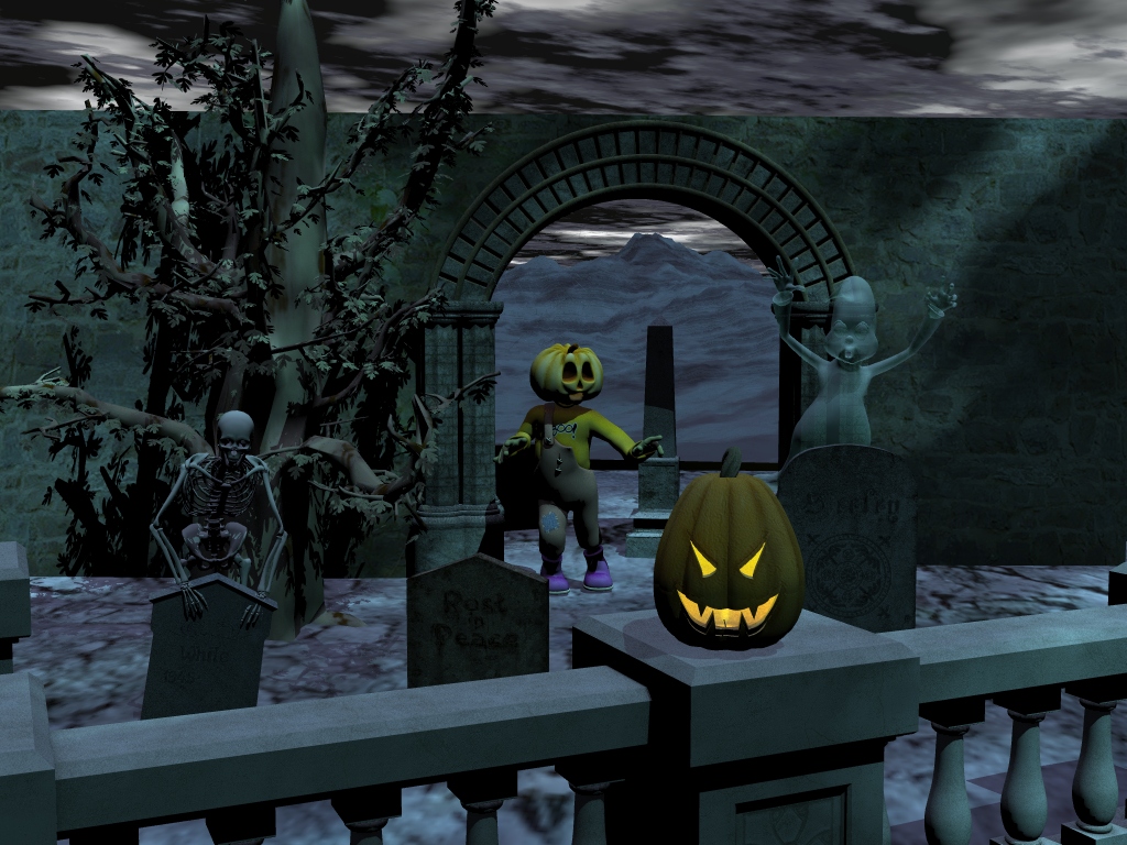 Links im Baum und im Torbogen über Jack-o-Lantern´s Kopf habe ich jeweils ein Spinnennetz platziert (war zusammen mit Grabsteinen und Kürbissen in nem Halloween-Pak) aber nach dem Rendern sind diese irgendwie nicht sichtbar. Was hab ich da falsch gemacht?