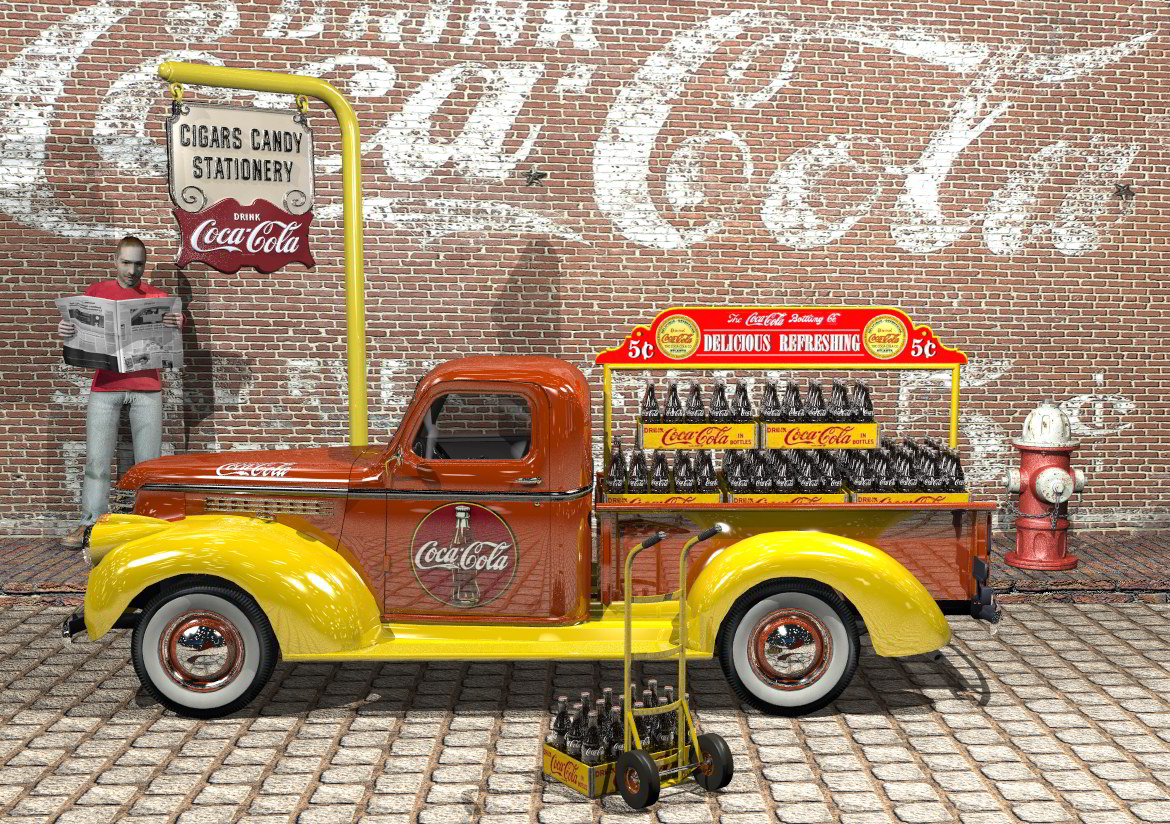 Das erste Bild ist von den Farben gut gemacht, da kommt richtig Retro-Stimmung auf. Allerdings wirkt der Truck etwas grieselig, wohl, weil der die Umgebung wohl tatsächlich zu stark spiegelt, inklusive Noise? Dadurch kommt der Laster auch ein bisschen unscharf.