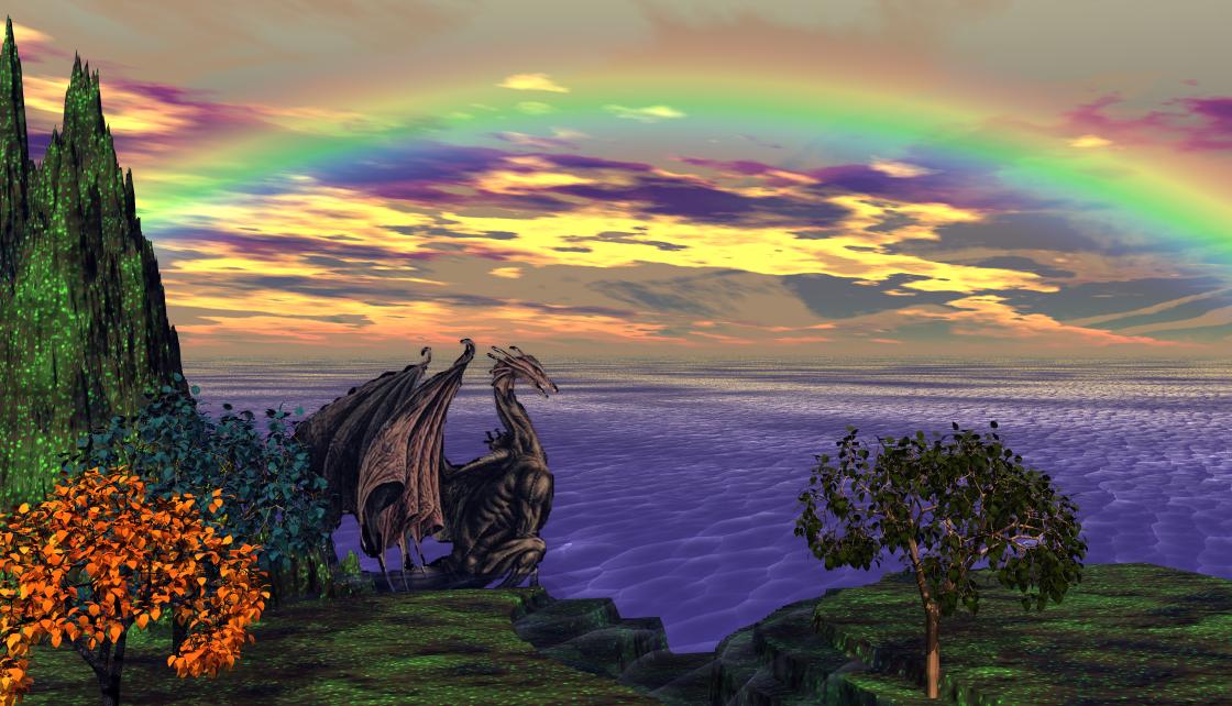Und der Himmel ist mir persönlich zu bunt, da kommt der Regenbogen nicht so gut zur Geltung. Aber die Idee mit dem Drachen gefällt mir sehr gut. ![]()