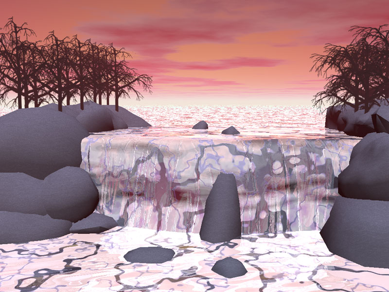 Es geht aber direkt weiter. Frisch aus dem Renderer (100% Bryce, nur die 2 Sternschnuppen sind nachträglich hinzugefügt):