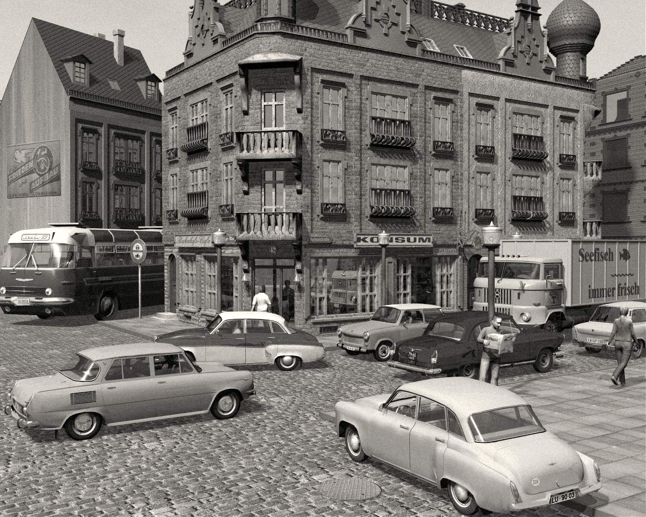 Straßenkreuzung in Erfurt 1971