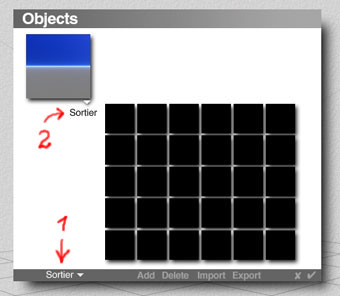 Eine Methode geht recht schnell und sauber (In Bryce 6 soll es komfortabler gemacht worden sein, das hab ich aber noch nicht und kann also auch nicht viel dazu sagen...) Das funzt mit Materialien und Objekten, leider nicht mit den Himmeln: