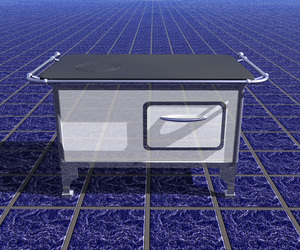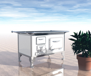 der Herd ist komplett in Bryce modelliert. Das meiste sind Primitives die dann wenn es erforderlich ist geboolt werden (wie die Rundung am Handlauf).