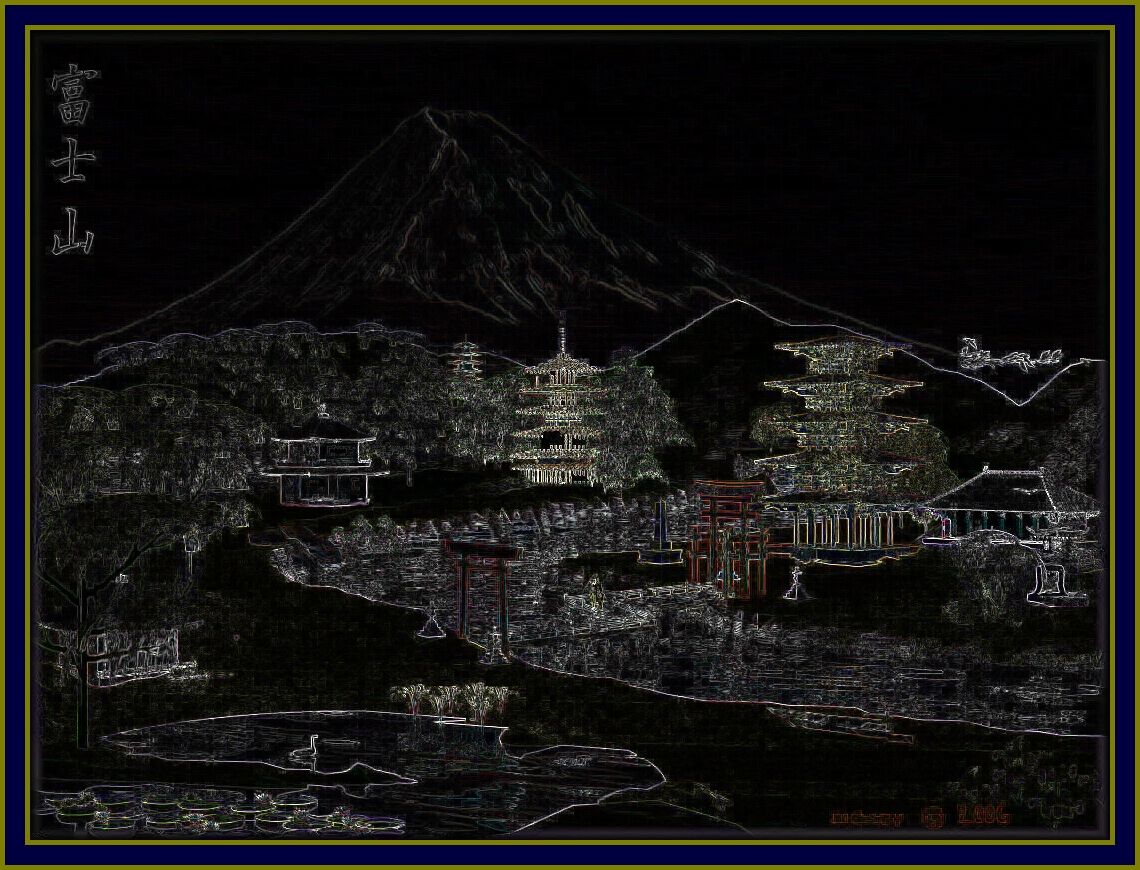 Dein Bild (ich spreche jetzt für den Vordergrund) erinnert mich sofort an die Stickereien in unserem Lieblings-China-Restaurante um die Ecke. Die Bilder die dort hängen sind auch stets in leuchtenden Farben. Ich würde also, eher den Hintergrund anpassen oder bzw. rendern.