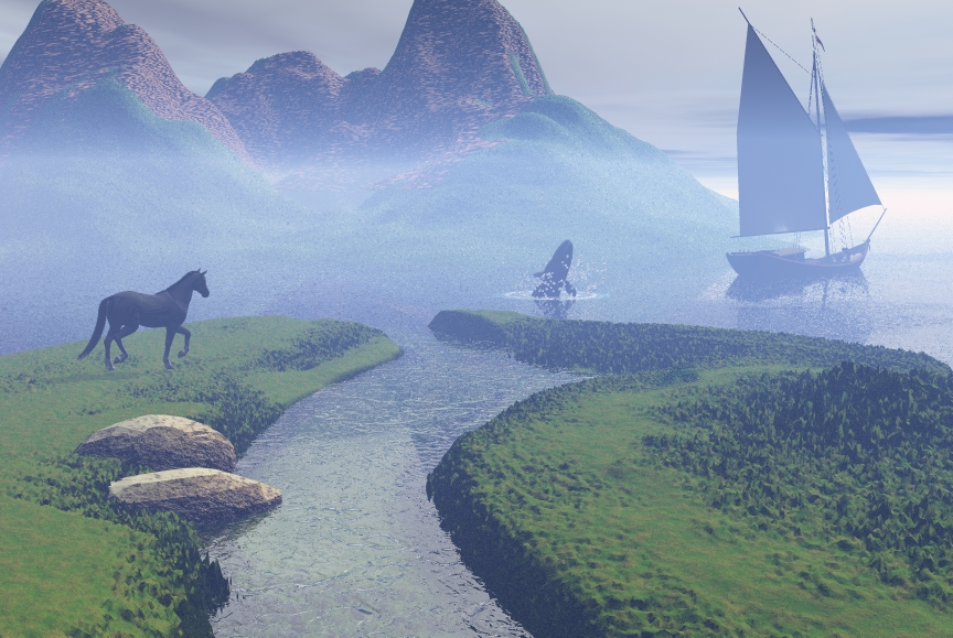 Das Erste ist so wie es aus Bryce geredert raus kam und das Zweite mit einem Filter in PSP bearbeitet...