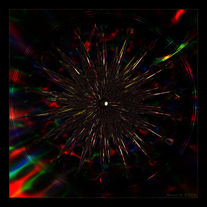 Hab' den Farb-Knoten umgebaut. Eigentlich ist nur die Beleuchtung geblieben und auch die nur zum Teil. Heraus gekommen sind zwei völlig andere Bilder. Wobei das Farbauge einfach nur ein Ausschnitt der 360° Ansicht des Traumfängers ist.