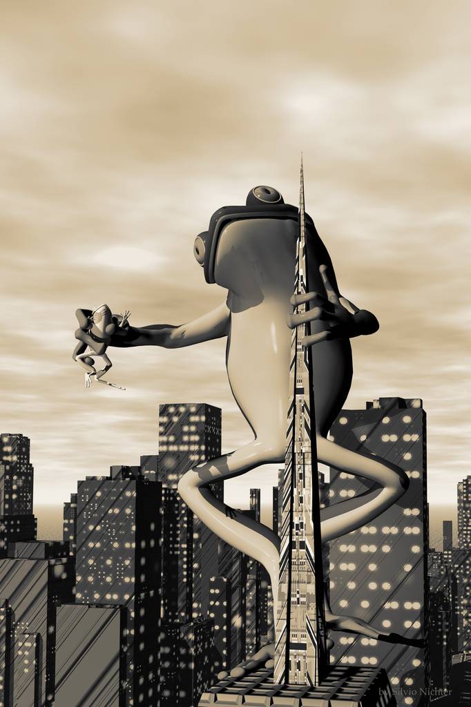 Auf dem ersten Bild sieht man ganz deutlich, dass King Kong im wahren leben eigentlich King Frosch hieß und auch nicht auf dem Empire State Buildig rumhüpfte.