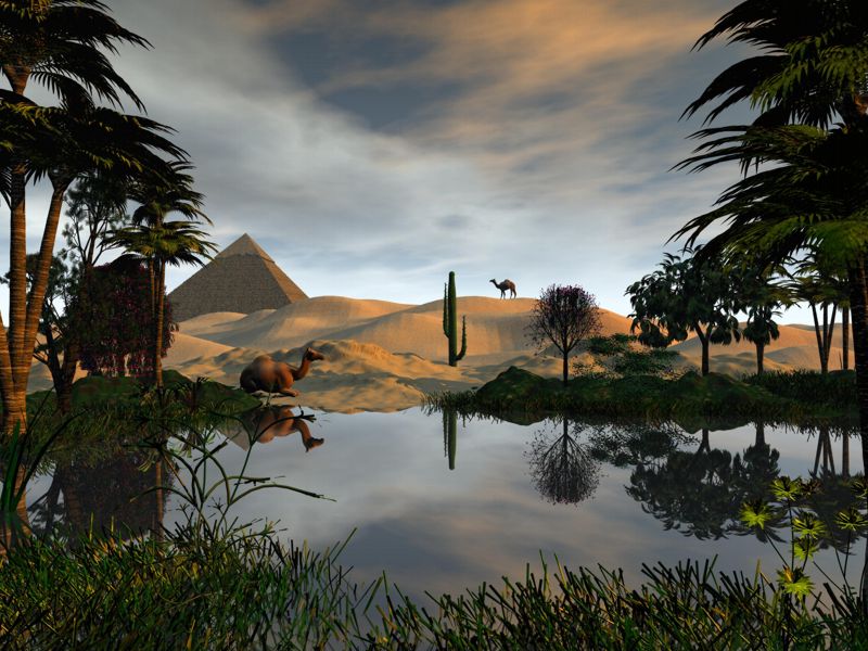 Jedoch würde ich aus dem "Riesenkamel" im Hintergrund eine Karavane (oder so was) machen, die durch die starke Hitze nur verschwommen auszumachen ist.