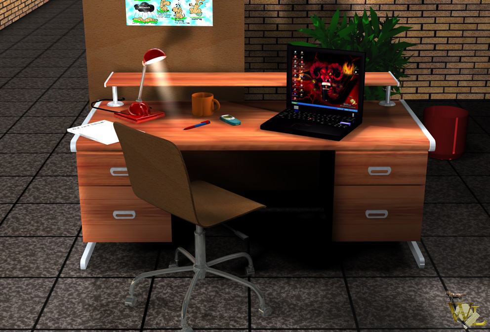 Noch ist mir viel in Cinema ein Buch mit sieben Siegeln. Ich habe hier überwiegend Freebies verwendet um das texturieren und die Lichtsteuerung zu üben. Die Tasse und den Papierkorb habe ich selbst gemodellt. Unerklärlich ist, warum haben beide Objekte die Streifen in der Mitte? Über Tips und Anregungen bin ich sehr dankbar.
