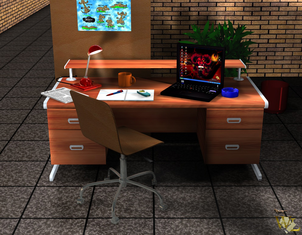 ich habe mit Cinema, welches ich von einem Freund erhalten habe, einmal den Versuch unternommen meinen Arbeitsplatz zu visualisieren. Wenn während der Nachtschicht der Betrieb reibungslos läuft, hat man auch mal ein paar Minuten Zeit für ein Schwätzchen mit den Kollegen.