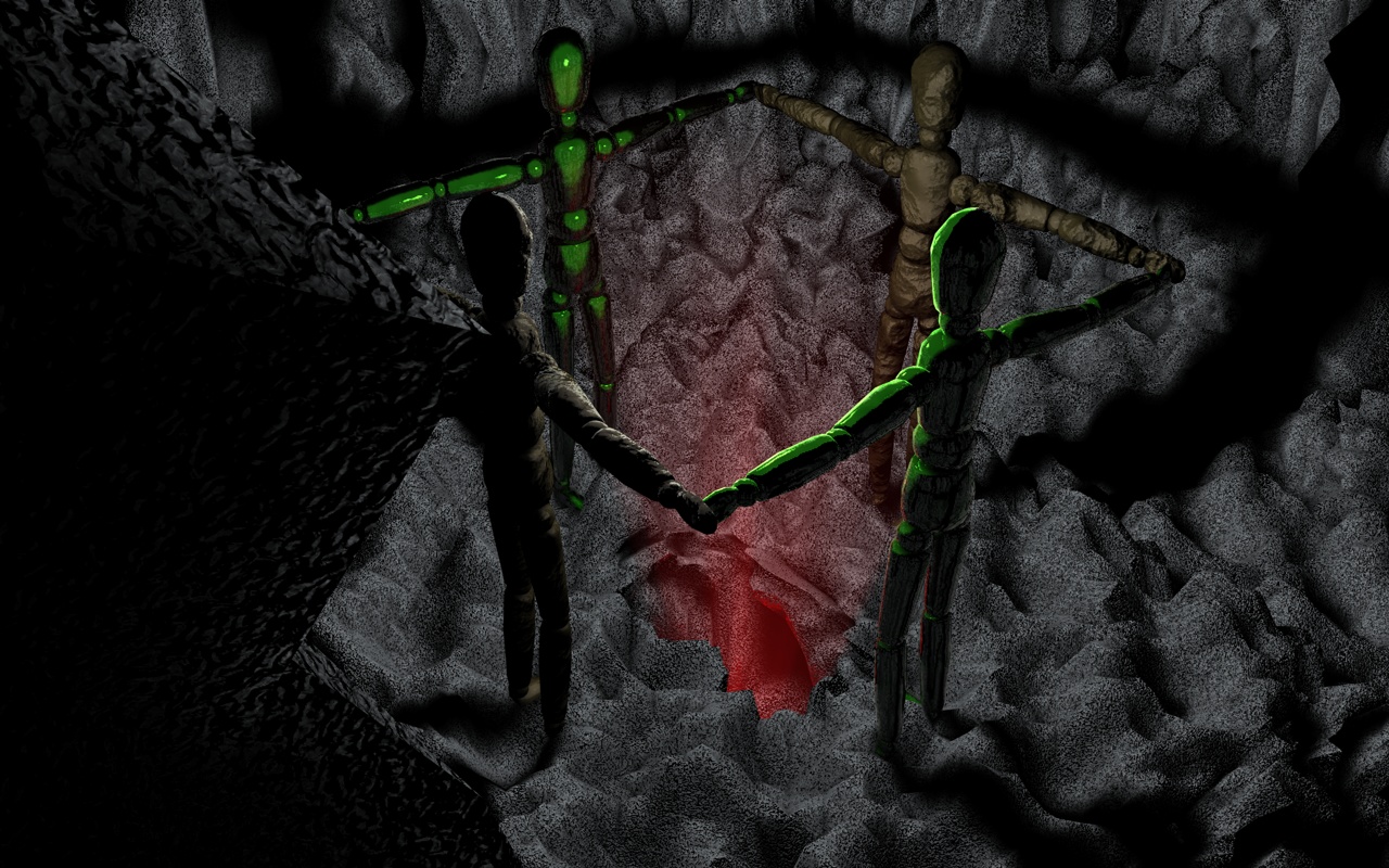 Die schatten der Figuren sind nur noch etwas zu tief, da das Licht ja aus dem Feuer kommt und der Stein links ist vieleicht noch etwas zu eckig...