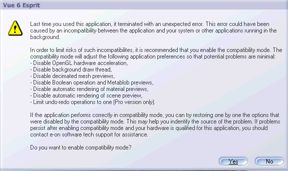 Wie Du schon selbst festgestellt hast, ist es auch völlig wurscht, wie man diese Meldung bestätigt - Absturzprobleme konnte ich damit ebenfalls nicht beseitigen.