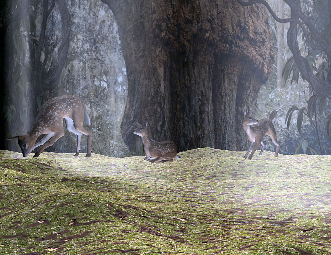 Jaaa, jetzt ist es richtig heimelig. Das Grünzeug und die Pilze geben dem ganzen etwas märchenhaftes. Auch das Reh, das du jetzt weiter im Vordergrund plaziert hast, kommt viel besser, weil es jetzt so schönes Licht hat.