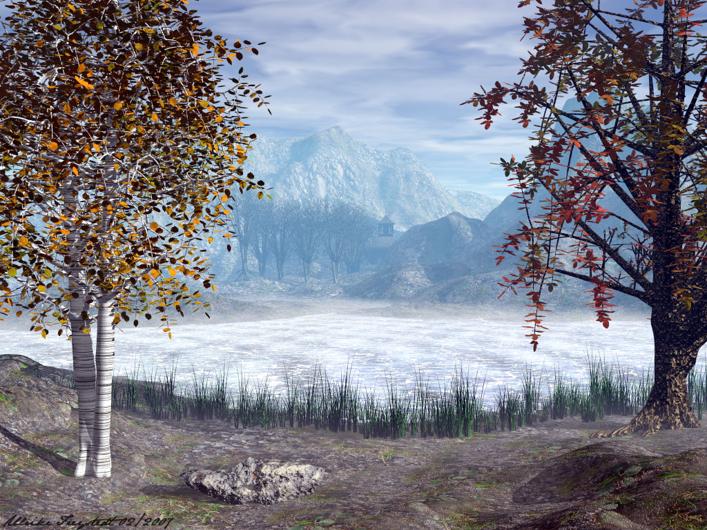 Nachdem ich so viel positives Feedback zu meinen beiden Bodentexturen erhalten habe, habe ich sie gleich mal in ein Bild mit eingebaut. Die Wassertextur ist ebenfalls selbst gemacht. Allerdings sind mir die "Bewegungen" noch zu gleichmäßig. Da werde ich wohl in einem ruhigen Stündchen noch mal an den Parametern drehen müssen.