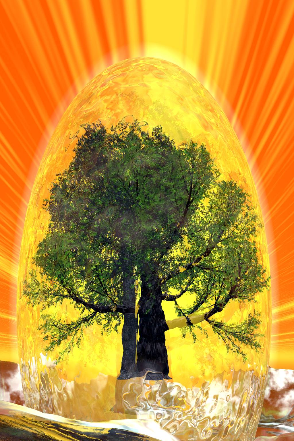 Ich habe den Baum genommen und das Bild völlig neu aufgebaut, nun wieder mit einer Art Doppelkuppel. Das kommt meiner Vorstellung von einem schützenden Kraftfeld schon näher.