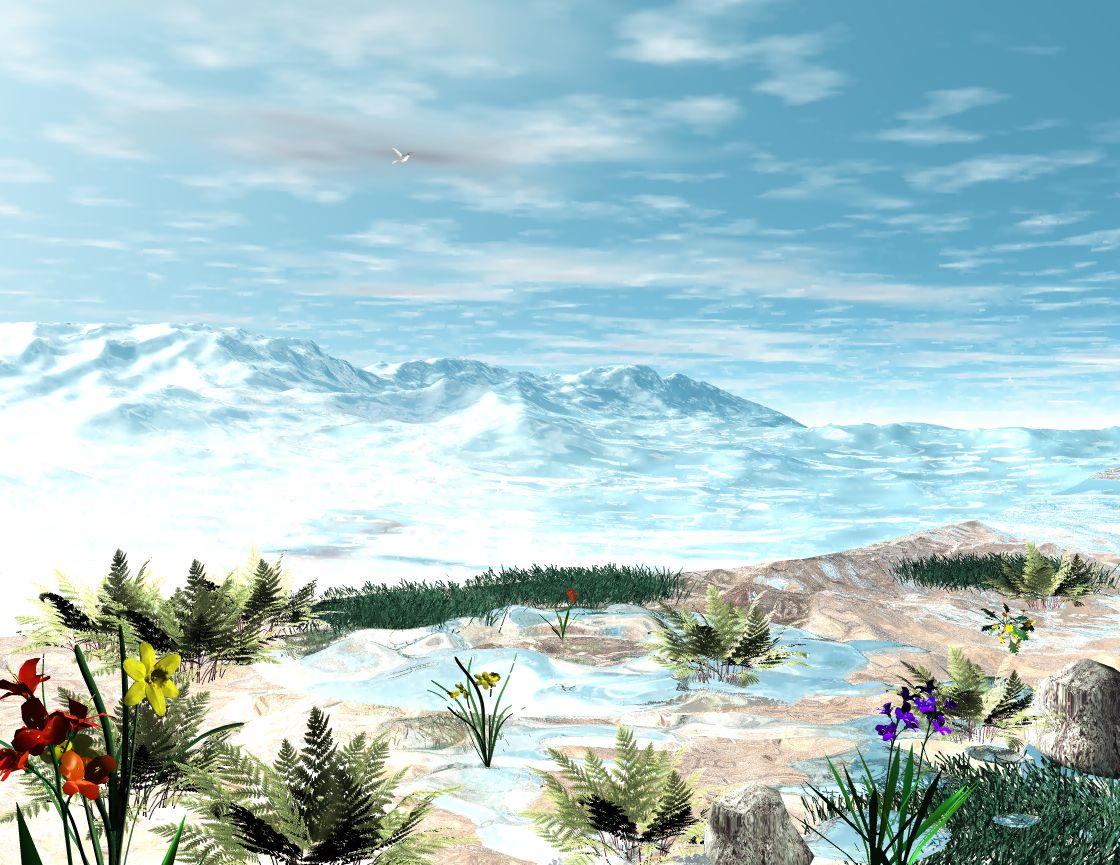 Das tauende Terrain schaut schon mehr nach herannahendem Frühling aus, den die bunten Blumen vorne ankündigen. ![]()