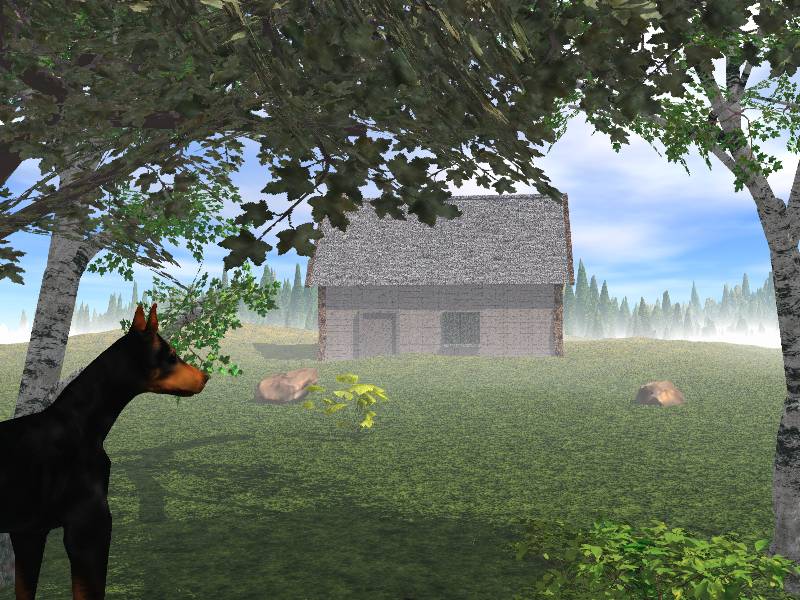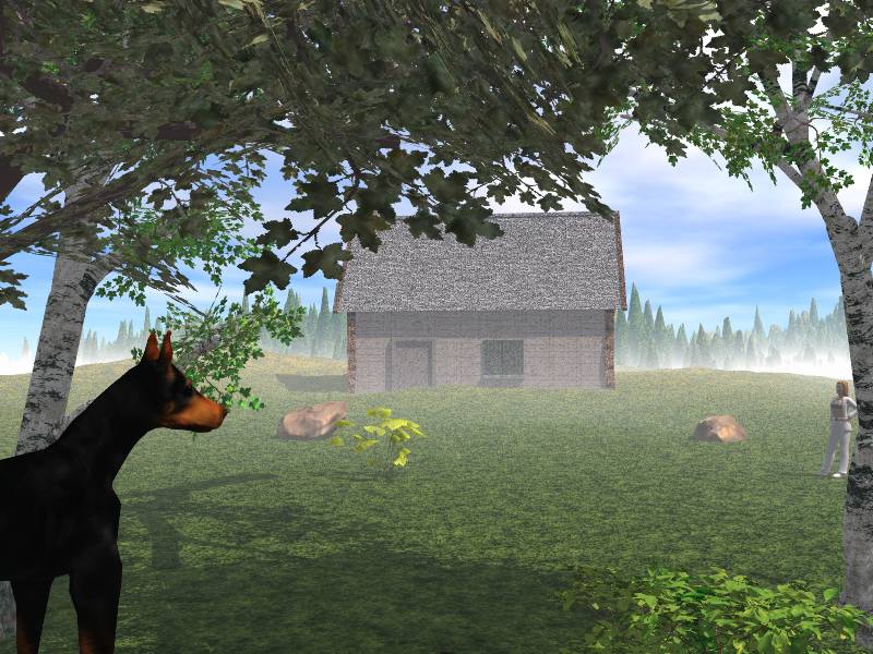 Nun vieleicht noch in den Hintergrund rechts einen Spielkameraden für den Hund, den er gerade entdeckt hat und das Bild hat seine Geschichte. ![]()