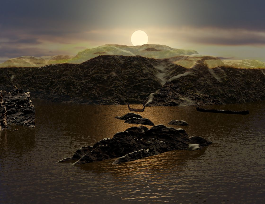 Bei diesem Sonnenstand müssten die Berge und Schiffe