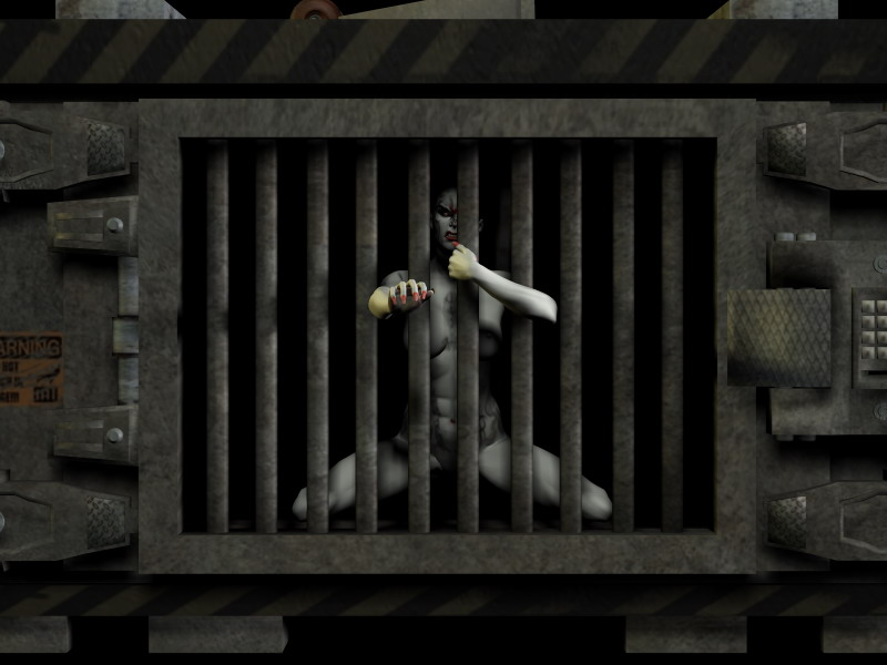 für den Käfig und seine Tex /Lighting ist der Körper noch nen kleinen Tacken zu hell... (oder es müsste da ein spot auf den Käfig fallen)