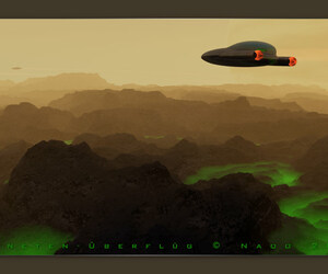 Die Landschaft gefällt mir sehr, besonders mit dem grünen Glühen. Nur das Raumschiff gefällt mir nicht wirklich. Gut, es ist in Bryce gemacht, für das ist es ja auch gut, nur wäre das Bild gesamthaft noch schöner mit nem anderen Raumschiff, das z.B. in C4D gemodelt wurde