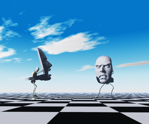 Der tiefe Kamerastandpunkt gepaart mit der Schachbretttextur führen das Auge zwangsläufig auf die beiden Figuren. Da hat space Recht, die Seelenverwantheit mit den künstlerischen Aussagen von Dali ist unverkennbar.