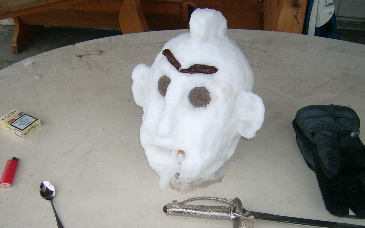 da es hier im mittelland der schweiz komischerweise am frühlingsanfang ne menge schnee gibt, und ich nichts zu tun hatte...... also schnappte ich mir eines meiner schwertern(weil ich kein messer hatte) und einen löffel..... den rest seht ihr auf den bildern