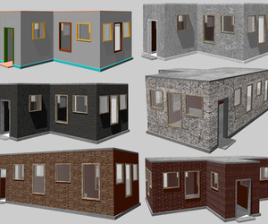 ... ich übe mich im Booling und im Erstellen eigener Texturen ... (ich weiß, dass die Türrahmen noch einen Hauch zu dünn sind, aber ich hatte keine Lust mehr aufs "Zahlenschubsen" ;)). Allen verwendeten Texuren (ausser links oben *g*) liegen Fotos zugrunde.
