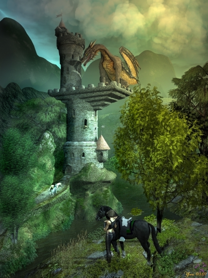 Zum Bild: Es ist, wie Naoo schon sagte, wieder einmal ganz typisches Yoro-Bild. =) Das Licht ist wirklich schön, und du hast eine tolle Landschaft um den Turm herum gebaut. Jetzt weiß ich auch, wie groß Drachen werden können. :D