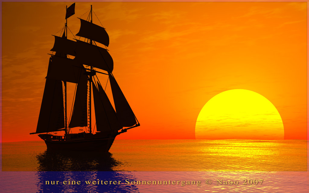 moje weer, das hast Du stimmungsvoll mit dem Bild ausgedrückt. Bei dem Sonnenuntergang bleibt das Wetter auch noch die nächsten Tage so. Wenn Du Lust zu noch einer Variante hast, setz den Schoner vor die Sonne, das gibt noch einen dramatischen Aspekt.
