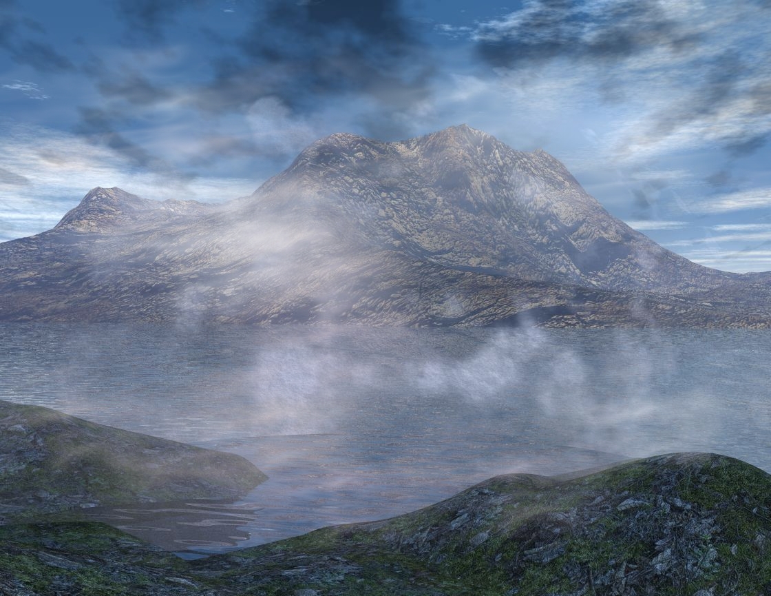 ..... was ich noch verbessern würde: die Wassertextur : zu grosse Wellen , die Berge: vielleicht etwas Grün oder ein paar Felsen im Uferbereich ?