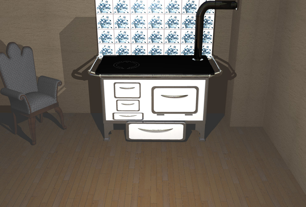 nachdem ich vor einiger Zeit mein Bryce abgeschossen habe und mein damals entwickelter alter Küchenherd mit ins Nirwana gegangen ist, habe ich ihn jetzt neu (überwiegend in Bryce) gemodelt. Einige Teile die in C4D einfach leichter zu modeln sind sind zwar auch enthalten, sind aber nicht Nennenswert.