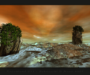 Fast sehr gut, würde ich sagen. Rate mal, was mich hier stört... die Textur wirkt gekachelt und hat ein für eine Landschaft unrealistisches Muster. War das Absicht?