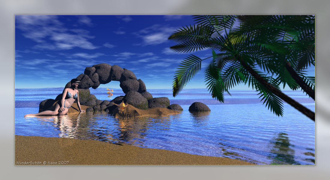 Die Frau mag ich gar nicht, na ja sieht halt nicht so toll aus, dann den übergang vom vorderen strand zum meer gefällt mir auch gar nicht
