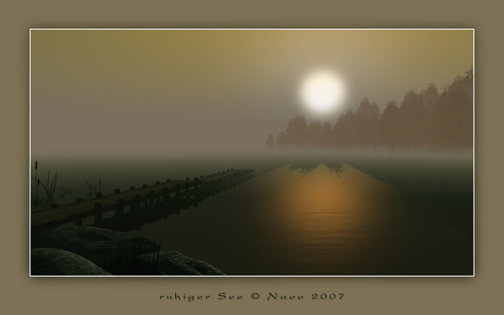 Das einzige, was mir auffällt, sind die 2 Bäume, die sich im Wasser spiegeln. Da ist die Spiegelung klarer als die Bäume selbst, dabei müsste sie doch auch nebelig verschwommen sein. ![]()