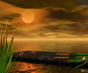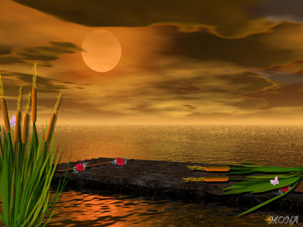 Mich stören allerdings die roten Blumen und die rosa Schmetterlinge. Die passen einfach von den Farben her nicht so recht dazu, und außerdem überladen sie das Bild. Das wirkt nämlich gerade durch seine Schlichtheit